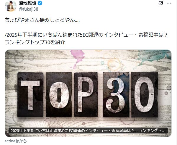 ECzineに連載中の「チョピやまのたのしいおしごと~ECあるある編~」が、2025年下半期TOP30に、5個ランクイン、TOP10には3個ランクインしていました!